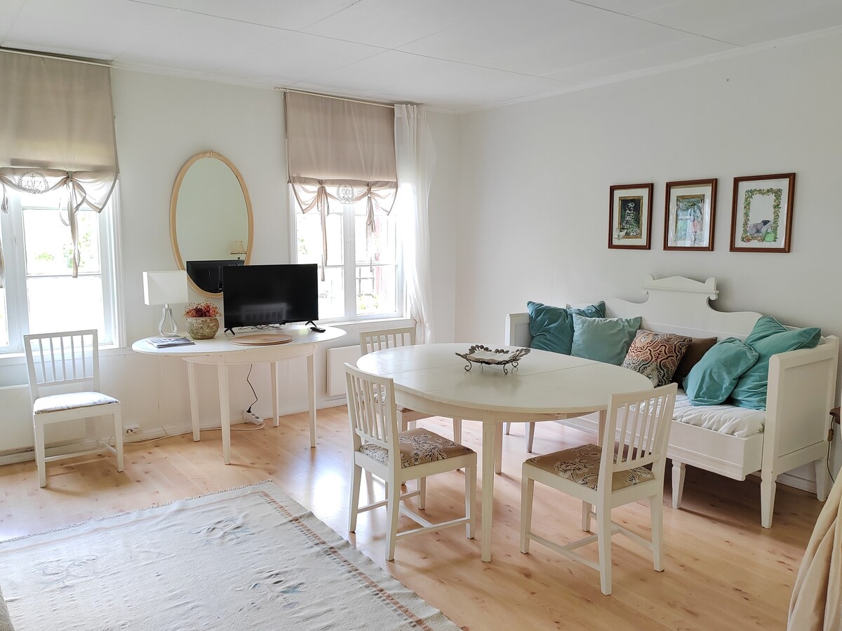 This new wooden apartment is for you who are looking for a quiet and high-quality apartment. Check-in is effortless with a key box. The apartment has all the comforts of today, the windows flood in light and the atmosphere is created by wide plank floors and high room heights. The quality of the apartment is generally high. The driver gets the car in his own private parking space. The apartment has its own terrace, so you can enjoy your morning coffee outside. This apartment guarantees a great night's sleep!