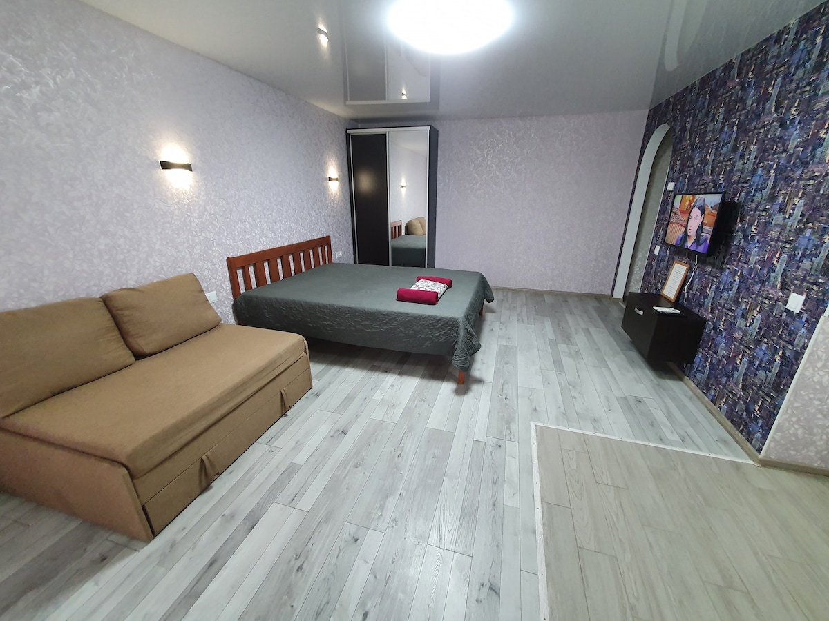 LUX class apartments in the very center of the city on Gagarina Street. The bus station is nearby. The apartment is equipped with all amenities for a comfortable stay. Nearby is a convenient and developed infrastructure: cafes, restaurants, supermarkets, bus station and much more. We are always clean and comfortable!
