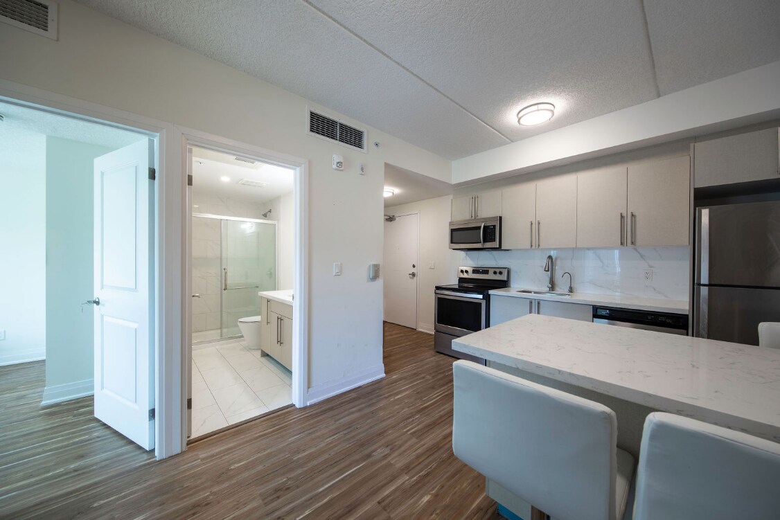 Waterloo's newest and best location, The Laundry Rooms is now open. With all the amenities and services of the best boutique hotel, our fully-furnished apartments with full kitchens, laundry facilities, swimming pool and co-working space make this the ideal place to live, work and play. Steps to all the best restaurants, shops and businesses. We offer remote check-in, keyless entry, virtual concierge services, secure parking and on-demand housekeeping.