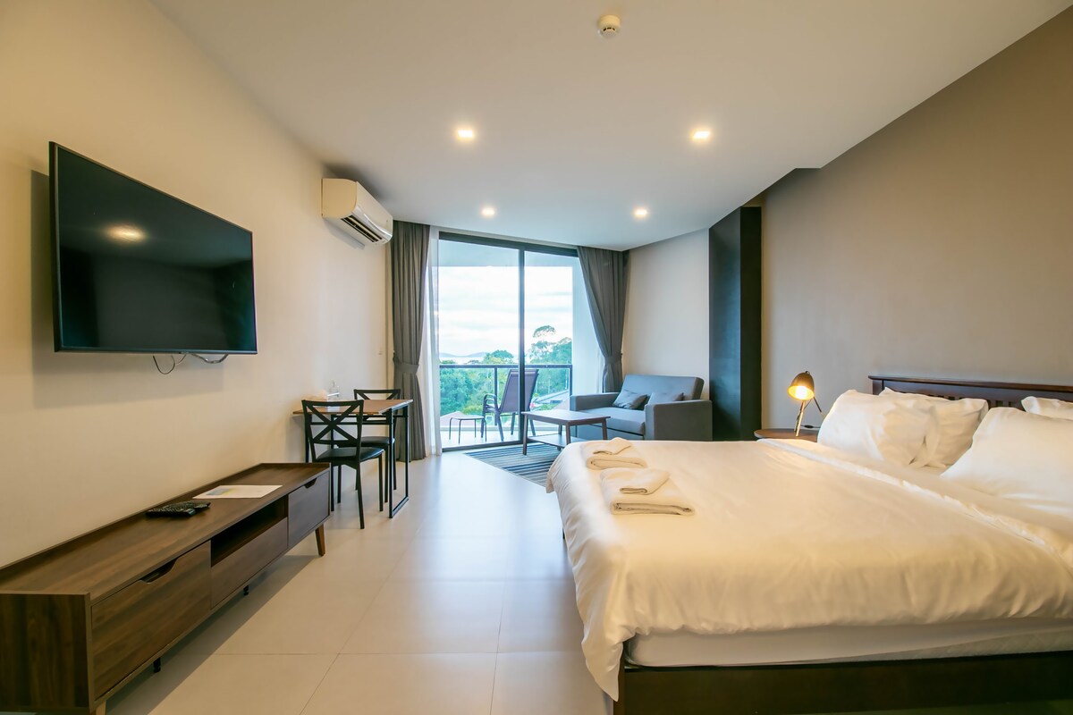 这是一套全新的两卧室公寓,位于海滨的绝佳地段。享有宽敞的客厅和用餐区,大型落地窗,将窗外美丽的景色尽收眼底。家具端庄而高雅,设计师精心打造的细节让人感觉放松和舒适。主卧室和卫生间宽敞而精致,夜晚躺在露台上的秋千椅里遥望星空,感受来自遥远星球的问候。次卧室配有一张舒适的双人床,两厅两卧两卫,非常适合家庭长短期居住,以及朋友之间的短期聚会。厨房设备齐全,可以满足您的三餐烹饪需求。公寓还配有无线网络,以及免费停车位。需要向您特别介绍的,本公寓与罗勇万豪酒店共享美丽而巨大的园林及泳池,与壮阔的沙滩近在咫尺,每晚均可沐浴在壮丽的海上日落余晖之中。入住的客人还可以会员资格享用万豪的餐厅、咖啡厅及酒吧。这是一个完美的度假居所,让您在舒适的环境中享受壮丽的海景和绝佳的位置。