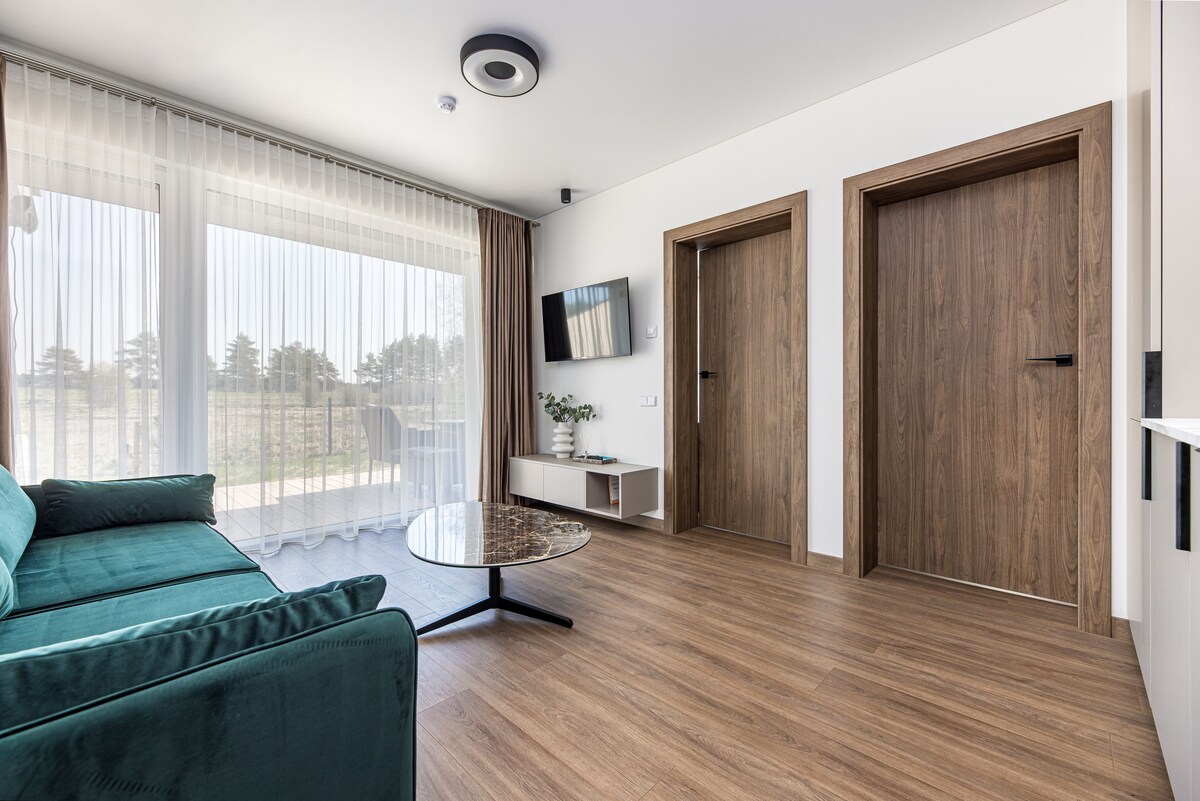Modern apartments surrounded by nature – a retreat that inspires. Our apartments are located in a peaceful and picturesque setting where comfort meets the beauty of the natural environment. You'll find everything you need for a relaxing stay – spacious rooms, a fully equipped kitchen, a cozy living area, and a private terrace. During the summer season, guests can enjoy leisure areas and a heated outdoor pool – the perfect place to unwind after a day of activities. An ideal choice for families.
