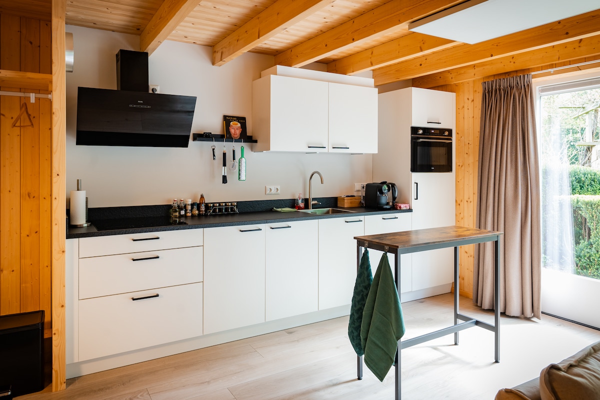 A stylish cabin dream! This studio looks out into the woods, from an elevation of 1,5 metres, is part of a family estate, & sits at 60m away from the road to the village of Vierhouten. It's not a simple holiday let, but rather a luxurious and comfortable zen suite with a stunning view. With vast woods and heather on your doorstep, one of the most beautiful of the Veluwe region if not The Netherlands. Endless magical forests with a special kind. A four season dream location.