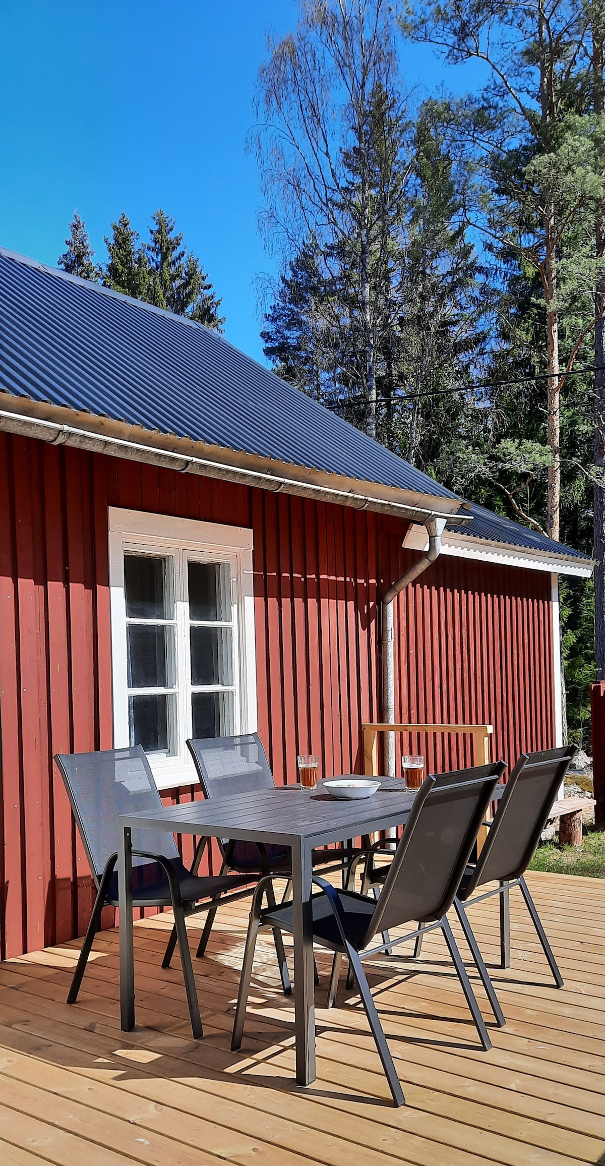 If you are looking for peace and quiet this is your place. The house is under new management and we had only five star reviews all of 2023 and 24. Our summerhouse/lodge is located 10 min bikeride to the beach by the lake. It comfortably fits five-six people, and is perfect for a family. Enjoy a morning coffee at the terrace/Hammock, walks in beautiful surroundings, and the cute little town of Klässbol that has a beach! I have a rowing boat that is free to use if it survived the winter.