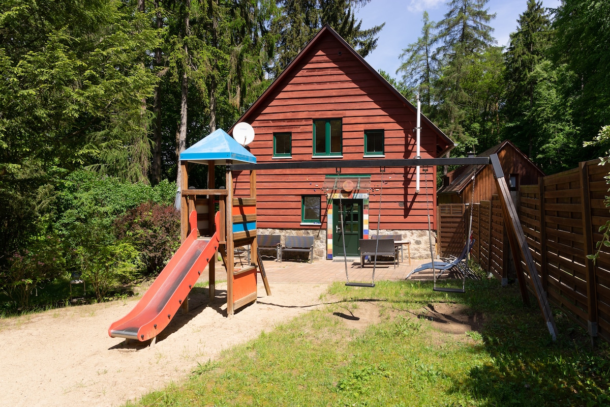 Ferienhaushälfte im Grünen mit Holzofensauna