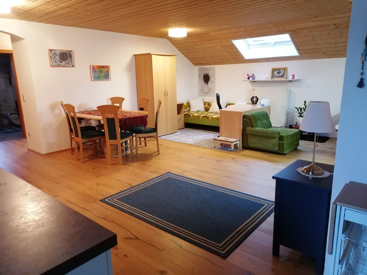 Relax in our cozy attic apartment and enjoy the breathtaking view of the Fichtel Mountains! Perfect for hikers and nature lovers: Right outside the front door you can go hiking on the Rauher Kulm or in the Fichtel Mountains. The ideal stopover for vacationers passing through. Also welcome for tradesmen or fitters. Bed linen and towels are included per guest. For groups of 5 or more, 2 must sleep on the sofa bed.