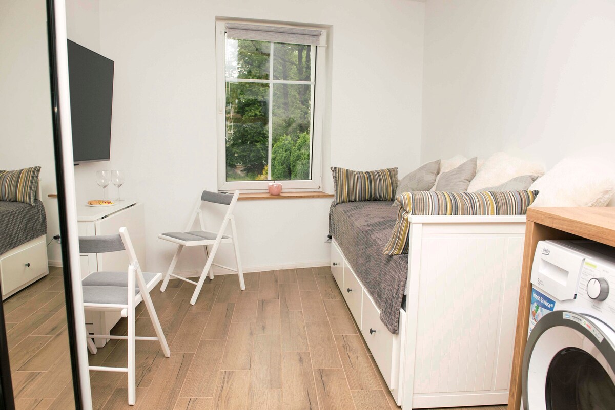 A cozy apartment in the center of Polanica - Zdrój after a major renovation. The apartment has a bathroom and kitchen with induction cooktop and microwave equipped with the necessary utensils. You can also make delicious coffee in a capsule coffee machine. Underfloor heating and a heater in the bathroom. A comfortable 160x200 folding bed will ensure a comfortable and pleasant sleep. High-speed Internet and TV with Netflix access. There is also a washer-dryer. Perfect for a single and a couple