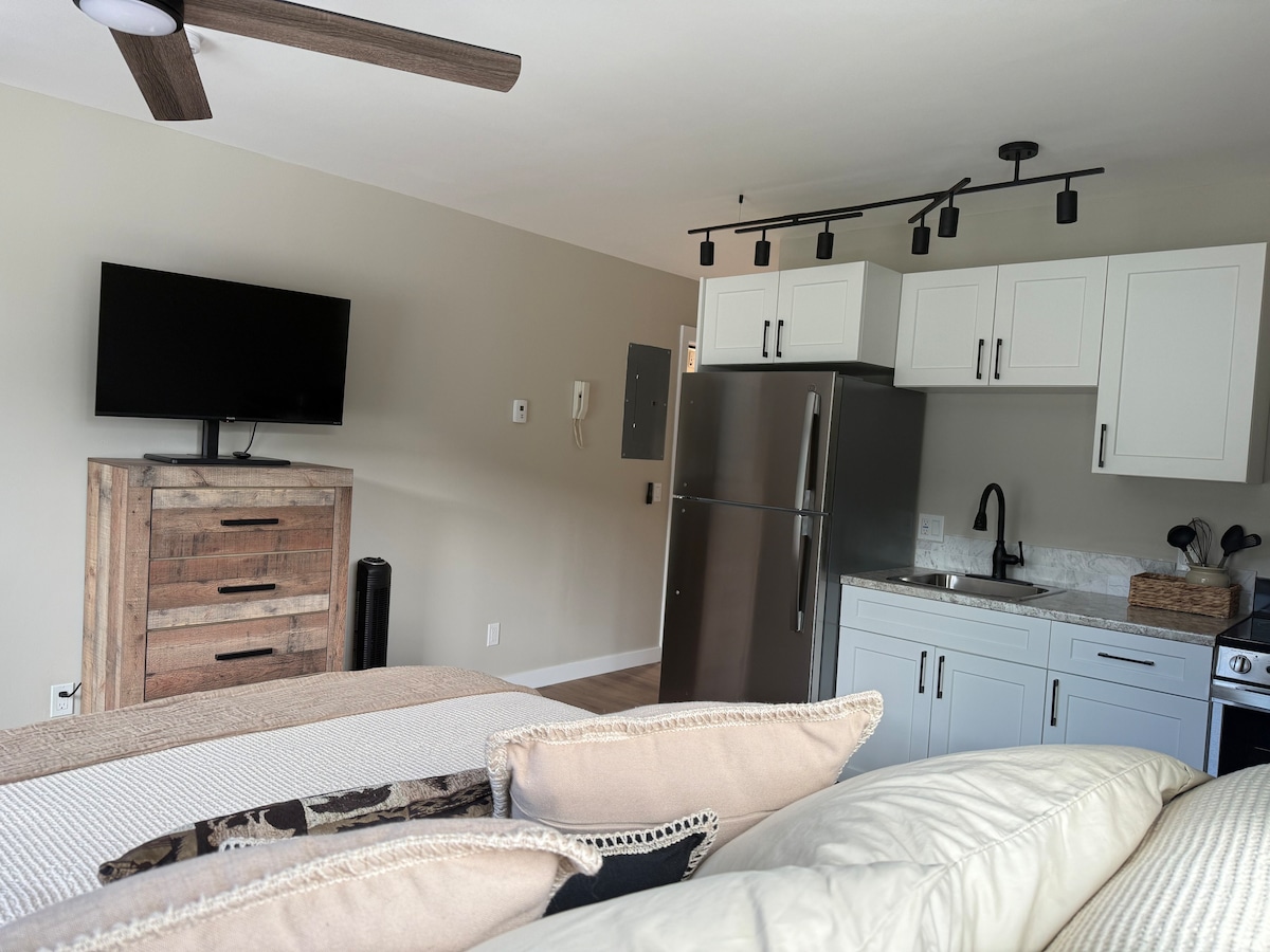 Welcome to our Moose Suite is in the Heart of Dawson City! Steps away from our newly renovated Bachelor suite are Historical sites, Great Restaurants, Diamond Tooth Gertie's Casino and Danoja Zho Cultural Centre. Perfect location to explore and to relax with super comfy premium bedding. Check out our other listings in Dawson City: Grizzly Suite - One bedroom Apartment Wolf Suite - King sized bed Bachelor Apartment Lynx Suite - One Bedroom Apartment