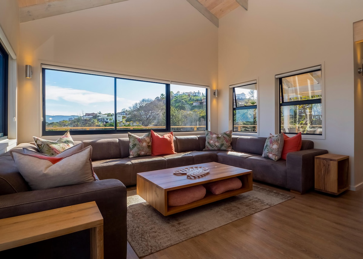 180 degree views (Solar for power security) of the stunning Knysna lagoon in in quiet neighbourhood. Top finishes in a new house! Lovely garden and pool. Sunny deck to enjoy the views and a Fireplace to add atmosphere and warmth on cooler evenings. So close to town but quiet and private. Braai/Barbecue for outdoor cooking and dining on the many beautiful evenings. The reviews from all our guests say it all and 75% of our guests are discerning international travellers.