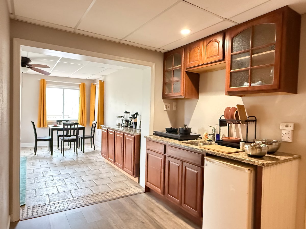 2-Bdrm SUITE w/kitchen, shared POOL, fenced yard