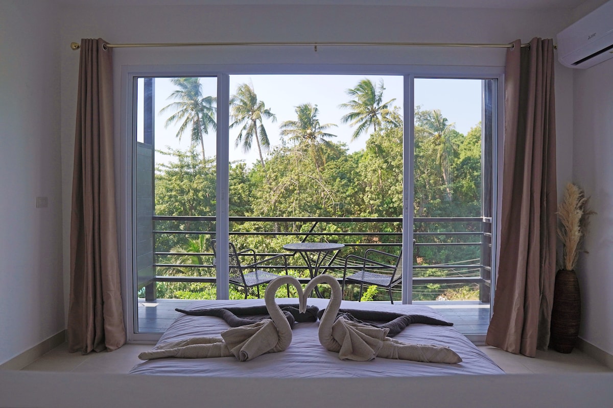 Free Shuttle Service: Standard room 🥰Garden view No balcony No Seaview Each room is unique. The photos shown are examples of this room type; guests may be assigned a different room than what is pictured. Resort is a family-owned, eco-friendly luxury hillside oasis. Perched on a private peninsula on the southern tip of Koh Tao Island in the Gulf of Thailand, it has exclusive views of the iconic Shark Island.