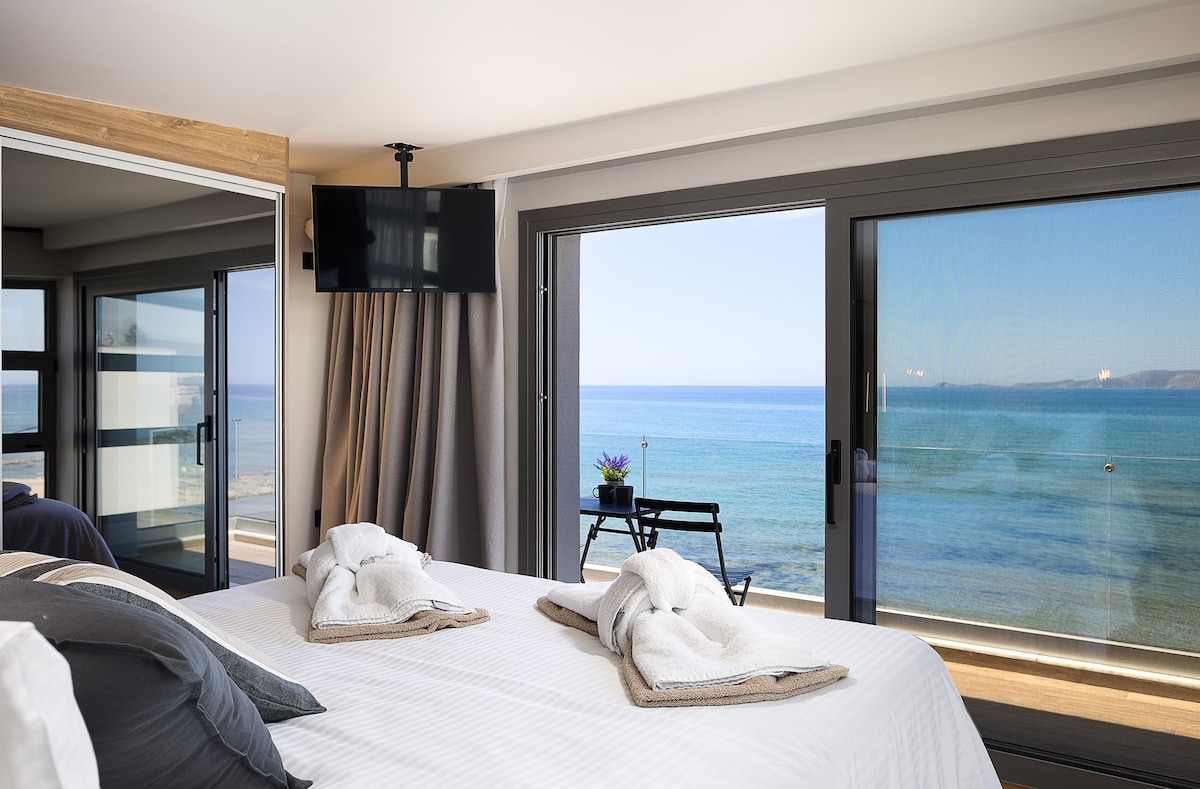90 sq.m chic and minimal loft, renovated on May 2019, located over Heraklion harbour & castle with 2 private balconies overlooking terrific sea & garden view! Two large bedrooms offer King-size beds with eco aloe vera mattresses for deep sleep! Pamper yourself at the huge sofa watching Netflix at 58inches tv.kitchen is fully equipped with modern induction & oven!Washing & drying machine for your comforts! The bathroom is absolute minimalistic and spacious!Eco-Inverter Klima and free parking!