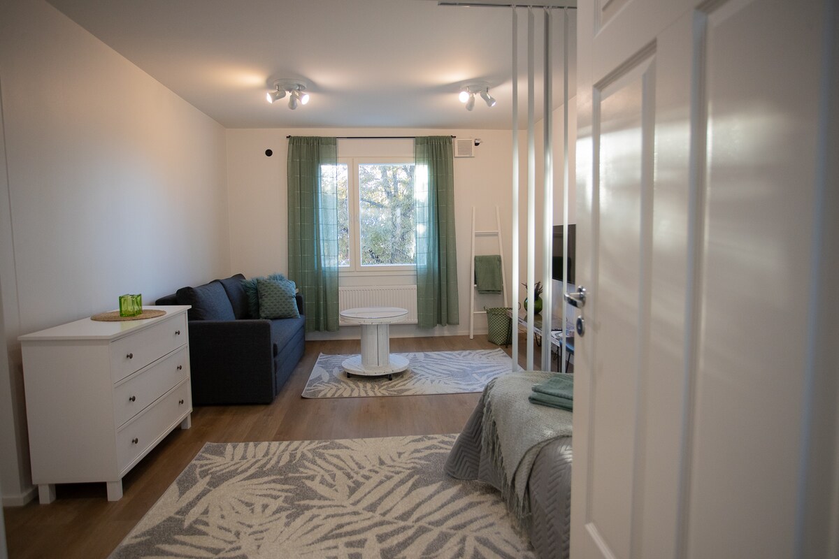 Centrally located apartment, close to shopping centers and 800 m from the center of Pietarsaari/Jakobstad. Free parking on private yard, cooking facilities. Perfekt for overnight stays, or why not for a longer visit as well. Cozy upstairs apartment for 1–4 persons. The apartment has toilet with shower, mini kitchen, kitchenware and 32" smart TV with both Finnish/Swedish free channels and Netflix. (Television is a smart TV with Chromecast) Double bed 120 cm and sofa bed 140 cm (New june 2022).