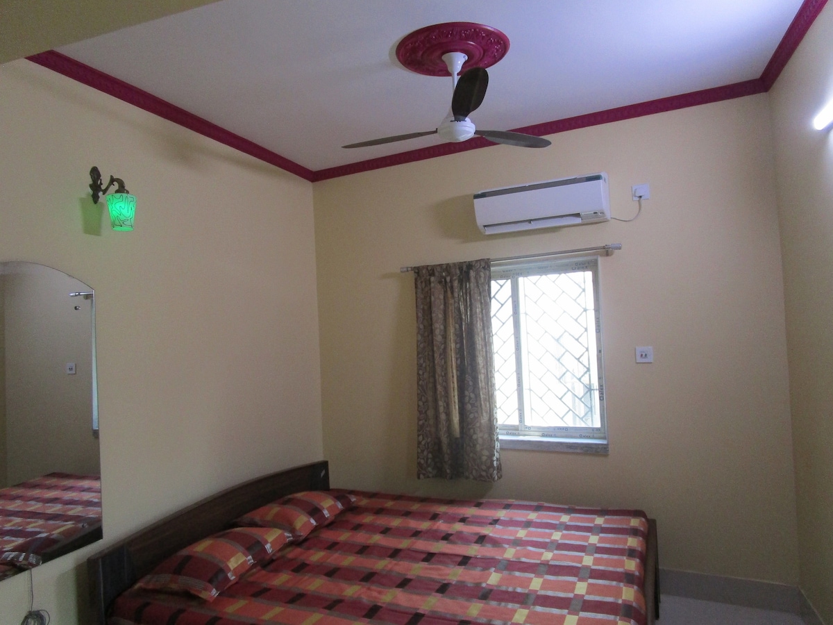 Excellent location in a friendly neighborhood near Naktala and Bansdroni Metro: ✅ Single Room- Spacious ✅ AC ✅ Free Wifi ✅ Fridge ✅ 2 People sleeping capacity ✅ Quick access to Gariya and Jadavpur. Charming place with cozy furniture, marble floors, beautifully maintained, kitchen w/ modern appliances! This is a great home for friends and family, students, and remote working. Great Wifi. We allow unmarried couples, only if atleast one of them or both are travelling.