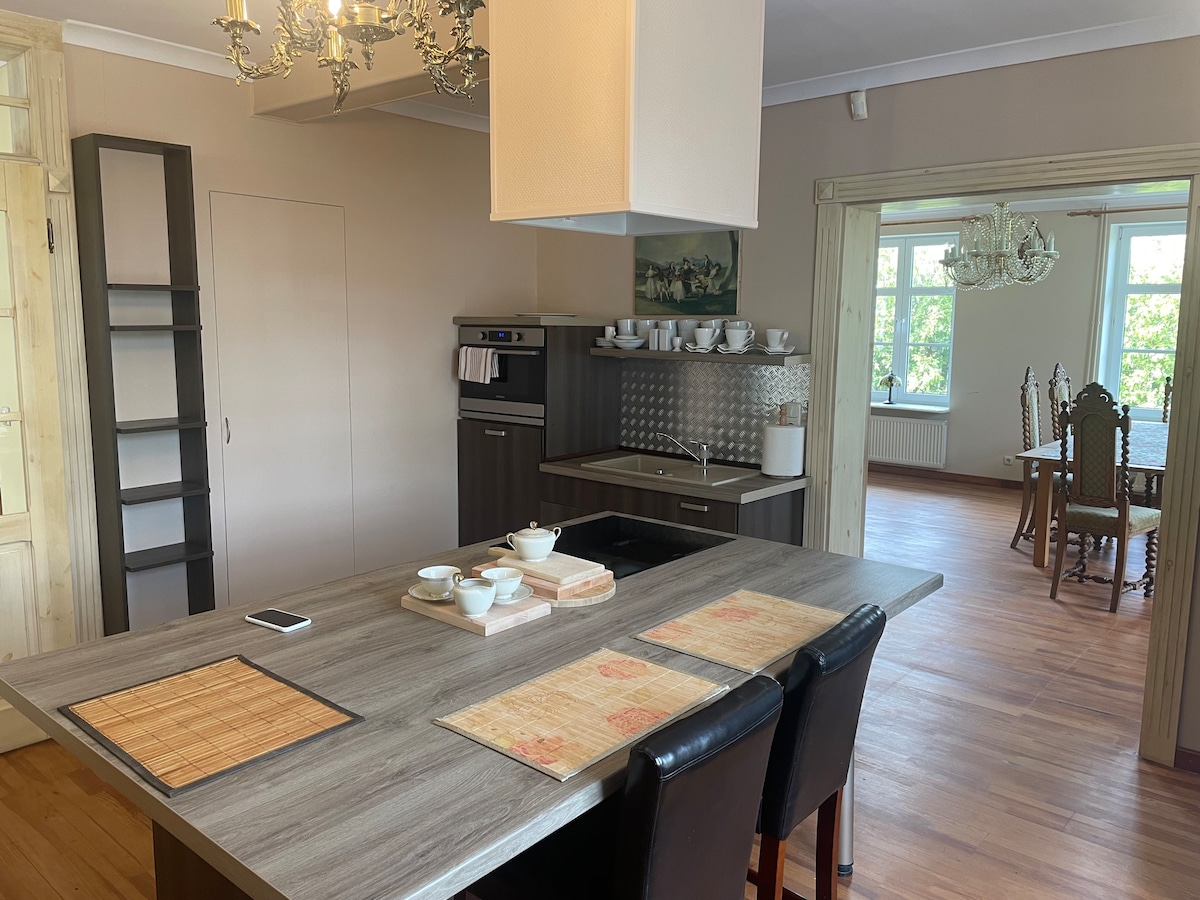 A gem among seaside apartments. Just a few steps from a beautiful sandy beach. Quiet, peaceful and amazing space. Apartment at Chopina Street in Kołobrzeg, located on the first floor in a renovated tenement house. Spa Zone. Two separate rooms, a mezzanine and a large living room with a kitchen (over 5 m at the top). Beautiful wooden beams and almost a century-old brick. Amazing and original atmosphere and design. Relaxation at its best. Check it out yourself – you won't regret it.