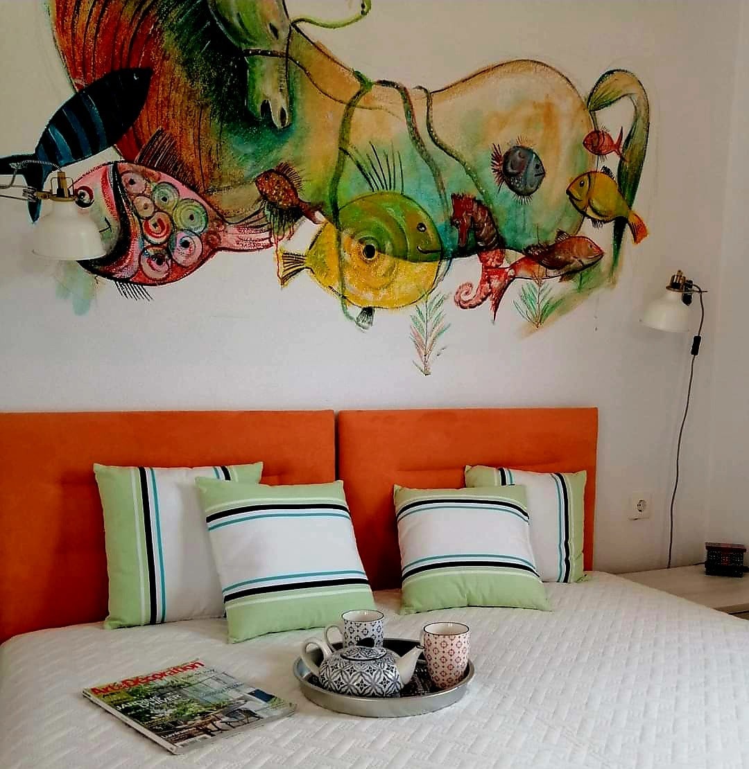 Our charming and cozy one bedroom apartment is located in the ground floor of the one hundred years old house in the quiet street some 30 metres from the sea. Court yard with wooden chairs and table covered with wild grape tree is the real chill zone.