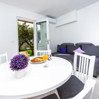 Villa Markoč – Ground-floor one-bedroom apartment for up to 2 persons. This cozy apartment features a comfortable bedroom with a double bed, a spacious living room with a sofa bed that accommodates an additional guest, a fully equipped kitchen, and a dining area. The apartment also offers a charming terrace with a beautiful sea view, perfect for relaxing. Guests have access to the villa's pool, providing a refreshing place to unwind during their stay.