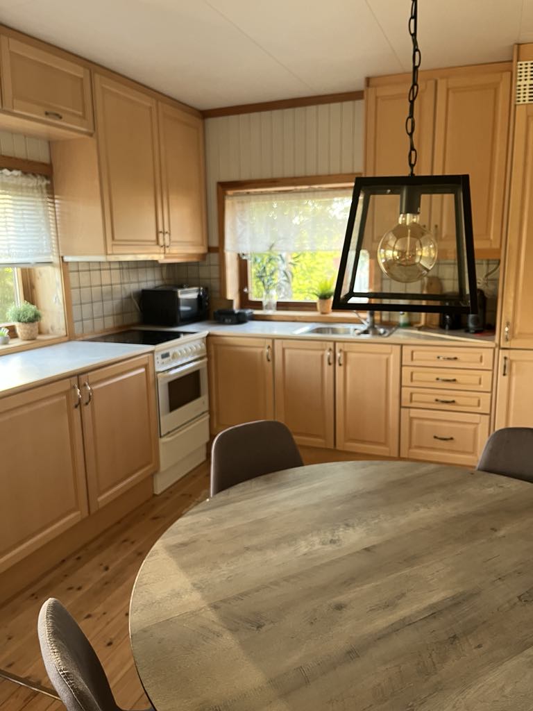 At this cabin you live right by nature, great hiking trails, ski center with activities in summer and winter, short way to shops and city. The cabin is located in a cabin village with quiet and good neighbors. Perfect place to find peace. Not a place to party. Families with children are welcome, but there are no safety measures for small children, such as stair gates, etc. There are 8 beds and it can accommodate 2 families, but it is best for 6 people around the table. Max 6 adults.