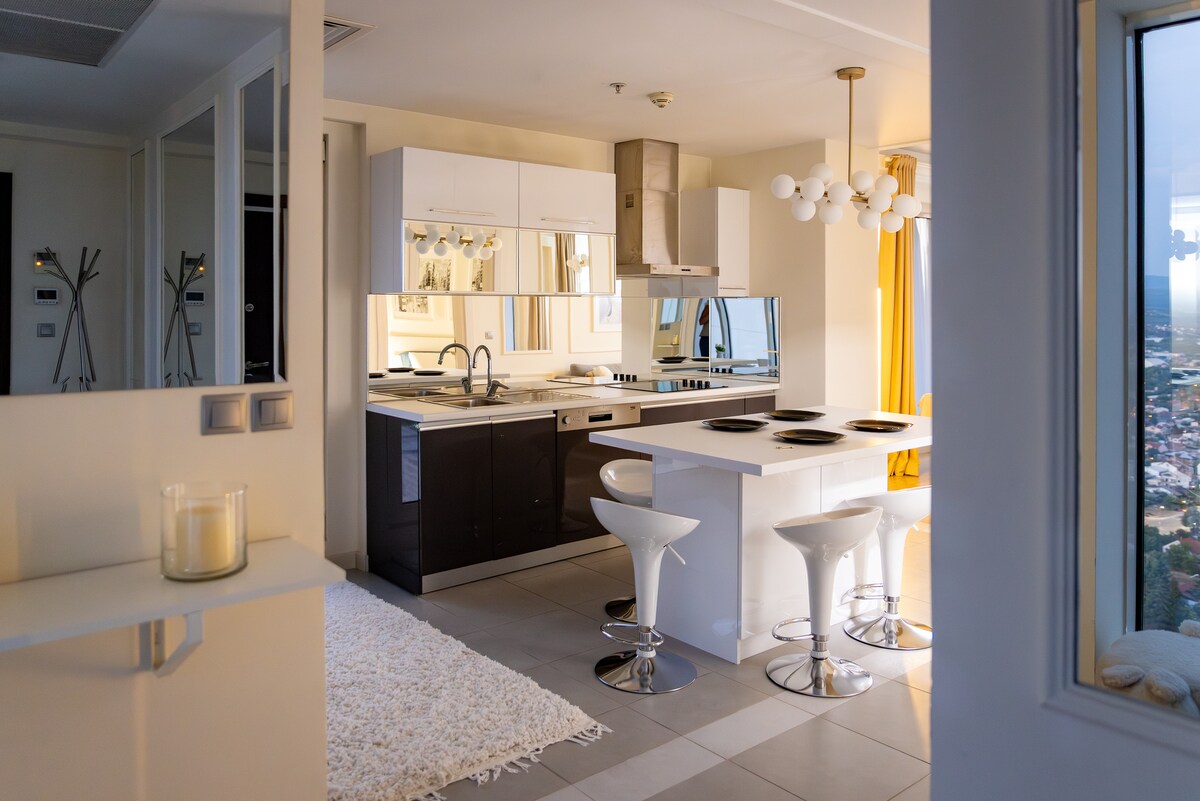 Stunning duplex apartment, recently renovated with modern and spacious design. Nestled in the best neighborhood of Skopje, everything is within walking distance. From the city center and landmarks to the best party places, restaurants and bars - you'll be in the heart of it all. Known for its high property values, this safe neighborhood ensures peace of mind during your stay. Experience the ultimate blend of convenience, style, safety, and a wonderful view in our magnificent duplex apartment