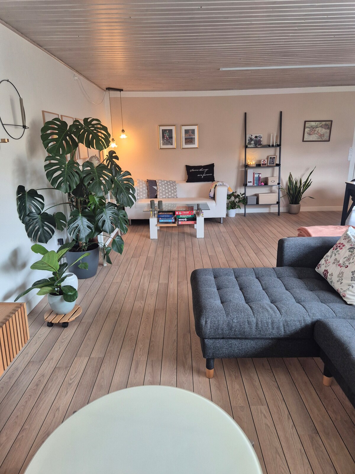 If you need fresh air, good views and a bright, nice apartment, then this is the place. We have a 100 m2 apartment in connection with our house, located on the first floor above the workshop and other outdoor spaces. There is a private entrance and good opportunities for privacy. The apartment consists of a kitchen/living room and living room in one. A large bathroom and 2 large bedrooms. In addition, you have your own balcony of 20 m2 in extension of the living room.