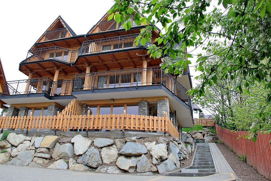 HRUBY REGIEL Apartment (Name of the 1339m above sea level peak - the ridge lying to the right from the apartment windows) guarantees relaxation close to the Tatra trails and nature. The luxuriously finished, spacious and bright interior leaves a unique impression after spending time in the atmosphere of Zakopane style. The wooden interior and wooden furniture, a large GARDEN, numerous regional elements give a sense of the atmosphere of the surrounding mountains.