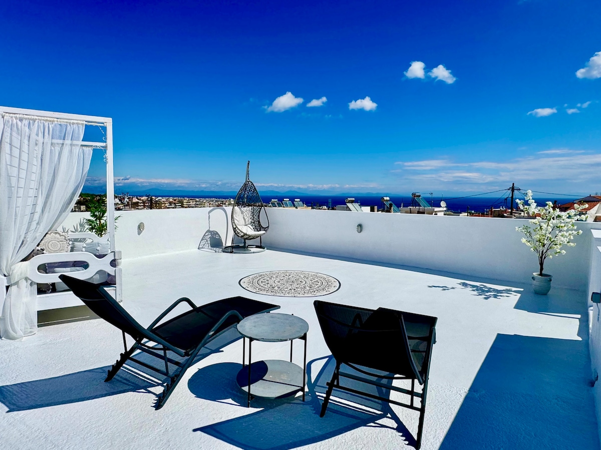 Sevasti Seaview Suite is a luxury, cozy and modern apartment in Koskinou of Rhodes, made to offer a unique and relaxed living to guests' holidays, providing a unique view of the sea and the city. It consists of high-quality materials, minimalist aesthetics, comfortable design and modern & peacefull decoration throughout the apartment. Inside Jacuzzi facilities with the ideal view of the sea makes it the perfect place to destress and rejuvenate while on vacation.