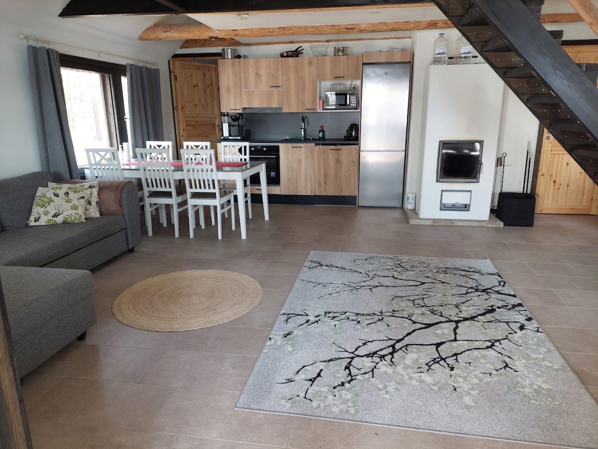 Welcome to our atmospheric cottage. Warm interior design, enjoyable wood-fired sauna, modern equipment and a glazed terrace will make your stay smooth and memorable. The forest landscape opening from the large windows invites you to relax by the fireplace and admire the starry sky and the northern lights in the dark. Korouoma hiking trails and winter ice falls are only 5 kilometers away - the perfect destination for hikers, ice climbers and nature lovers all year round.
