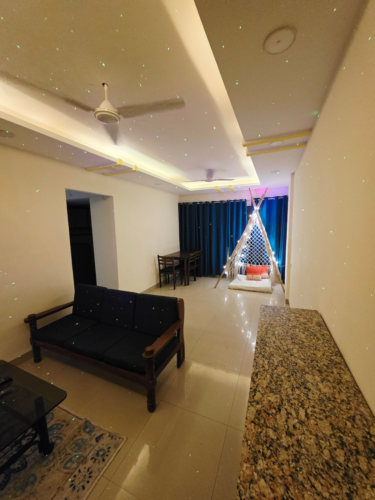 Soak into luxury at Moroccan Oasis by Kara Immerse yourself in awe-inspiring interiors, hygienic environs, cloud beds, hospitality grade 10" mattresses, ultra luxurious fine linens, and luxury toiletries, all meticulously designed to transport you to the enchanted lands of Morocco With mood lighting, cozy corners and nooks throughout the space and 3 balconies, you're in for a great time With Elephant & Co as your neighbour and a 2-minute ride to Balewadi High Street, you are in great company