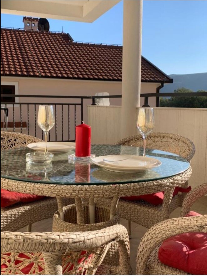 Comfortable modern accommodation with a large terrace for outdoor dining and a fireplace for cozy evenings. Walking distance of Porto Montenegro and the beaches of Tivat. Restaurants and cafes for every taste and budget. 3 minutes walk to a vegetable farmer's market, shop, butcher, etc. Several hiking trails start near the apartments. The ideal place for a company or a family with children.