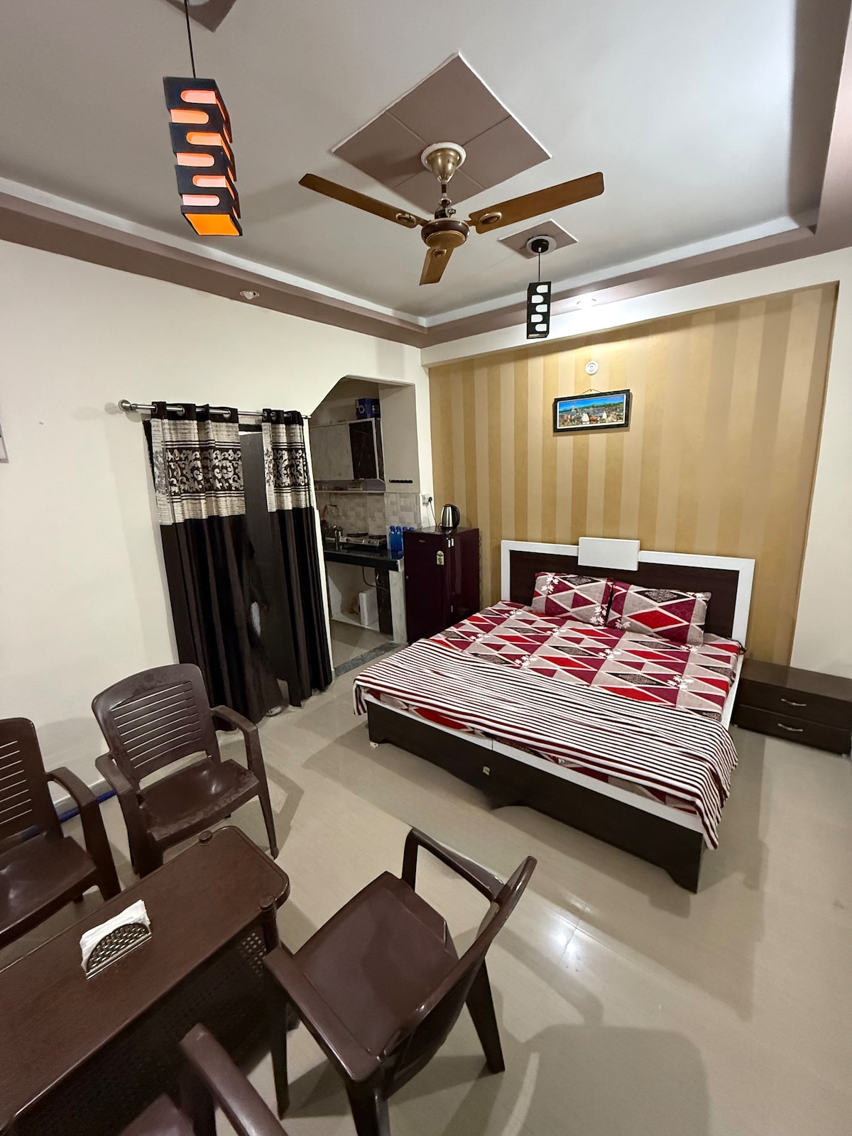 The apartment is located inside a gated society near Haridwar, making it ideal for: •Couple friendly • Spiritual visits to Har Ki Pauri • Patanjali Yogpeeth & nearby wellness centers. • Weekend getaways • Work-from-home stay You get the serenity of Uttarakhand with easy access to the city. Amenities & Comfort✨ • Dedicated parking • Self check-in • Gated Security • Zomato/Swiggy operational This premium studio offers privacy, luxury and safety.