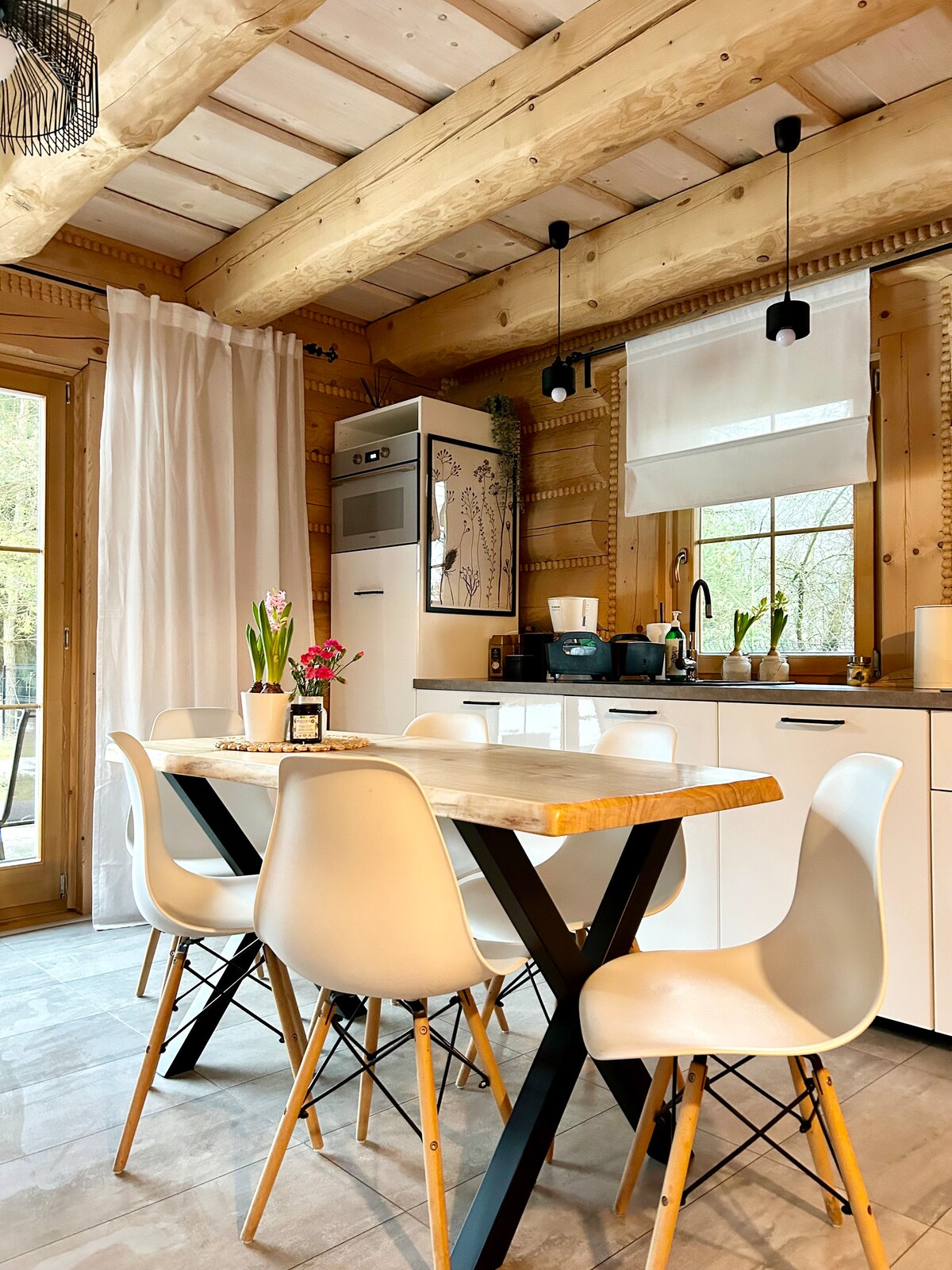 We invite our guests to a modern barn. The cottage is fully equipped and prepared to accommodate 4 people. When you book one of our cottages, you get 2 hours of access to the private spa area for each night of your stay. Our SPA was created with rest, closeness and full privacy in mind. We warmly welcome you with red wine, coffee (Nespresso), tea, water and sweets :)