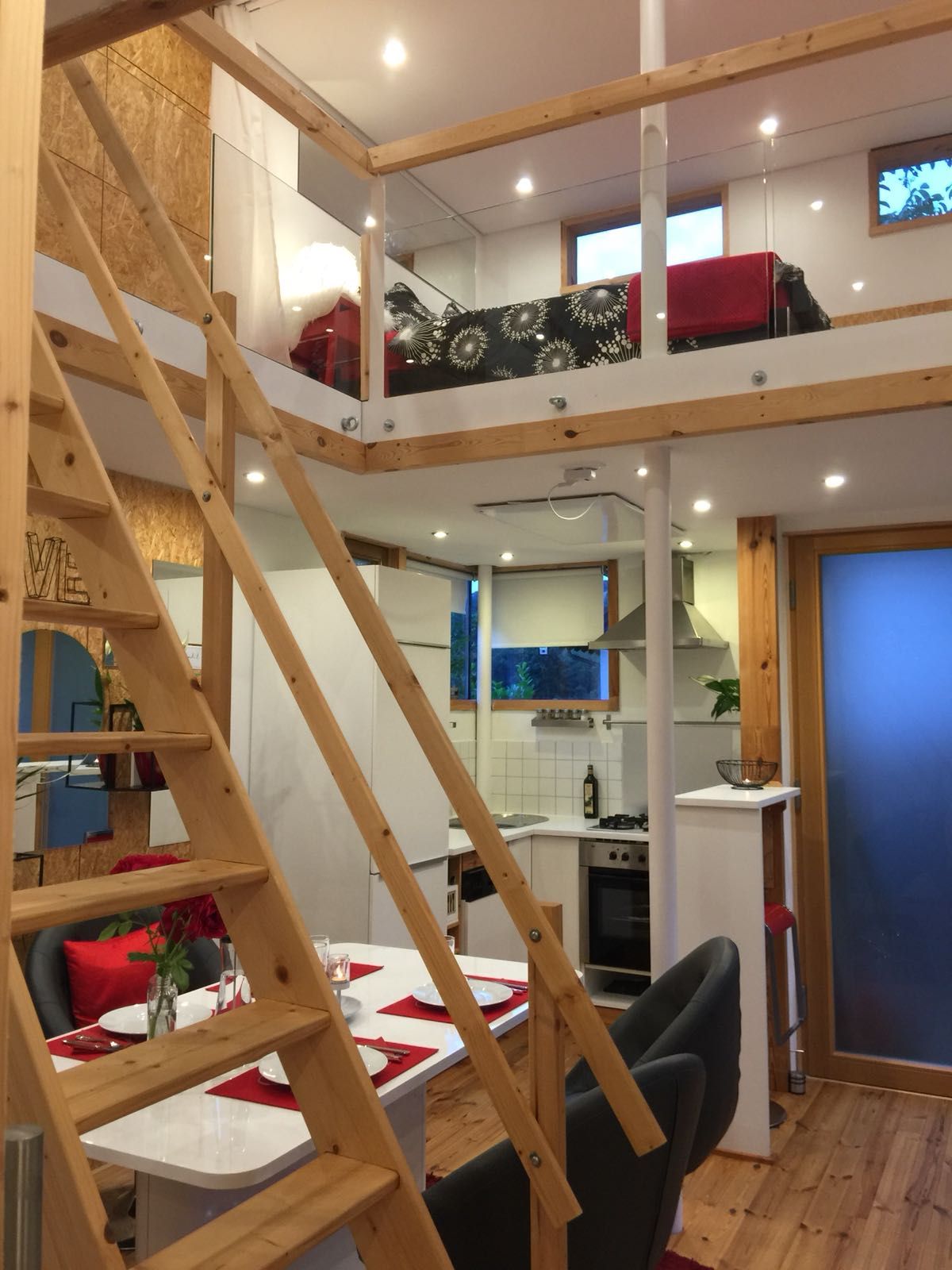 Sophies Villa liegt in einem Hinterhof, mitten in der Stadt. Im unteren Wohnbereich findest du eine Couch, die man ausziehen kann, einen Tisch und 2 Stühle, TV und einen kleinen Küchenbereich. Über eine steile Treppe gelangt man in den Schlafbereich und zum Bad. Da die Treppe sehr steil ist, ist sie nicht für Menschen geeignet, die in ihrer Bewegung eingeschränkt sind. Diese Unterkunft ist auch nicht für Kinder und Kleinkinder geeignet, es keine Sicherheitsabspeerungen im oberen Bereich gibt.