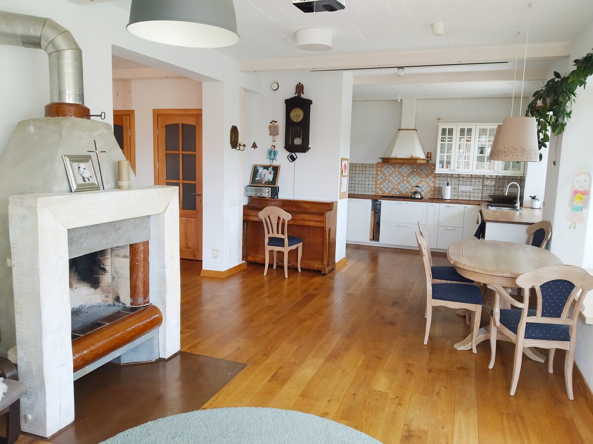 We are family with five children renting our home as we are absent during summer time. Our place has beautiful river panoramas from terraces, 3 separate bedrooms, 2 bathrooms, large living room and kitchen. In the yard you will find playground, BBQ and wood stove sauna. The house is very well insulated, so no air conditioning is needed during summer. We are 2 min walk from Kretinga center surrounded by trees and river birds. Palanga is 15 mi by car, bus stop (to Palanga/Klaipėda)is 2 mi walk