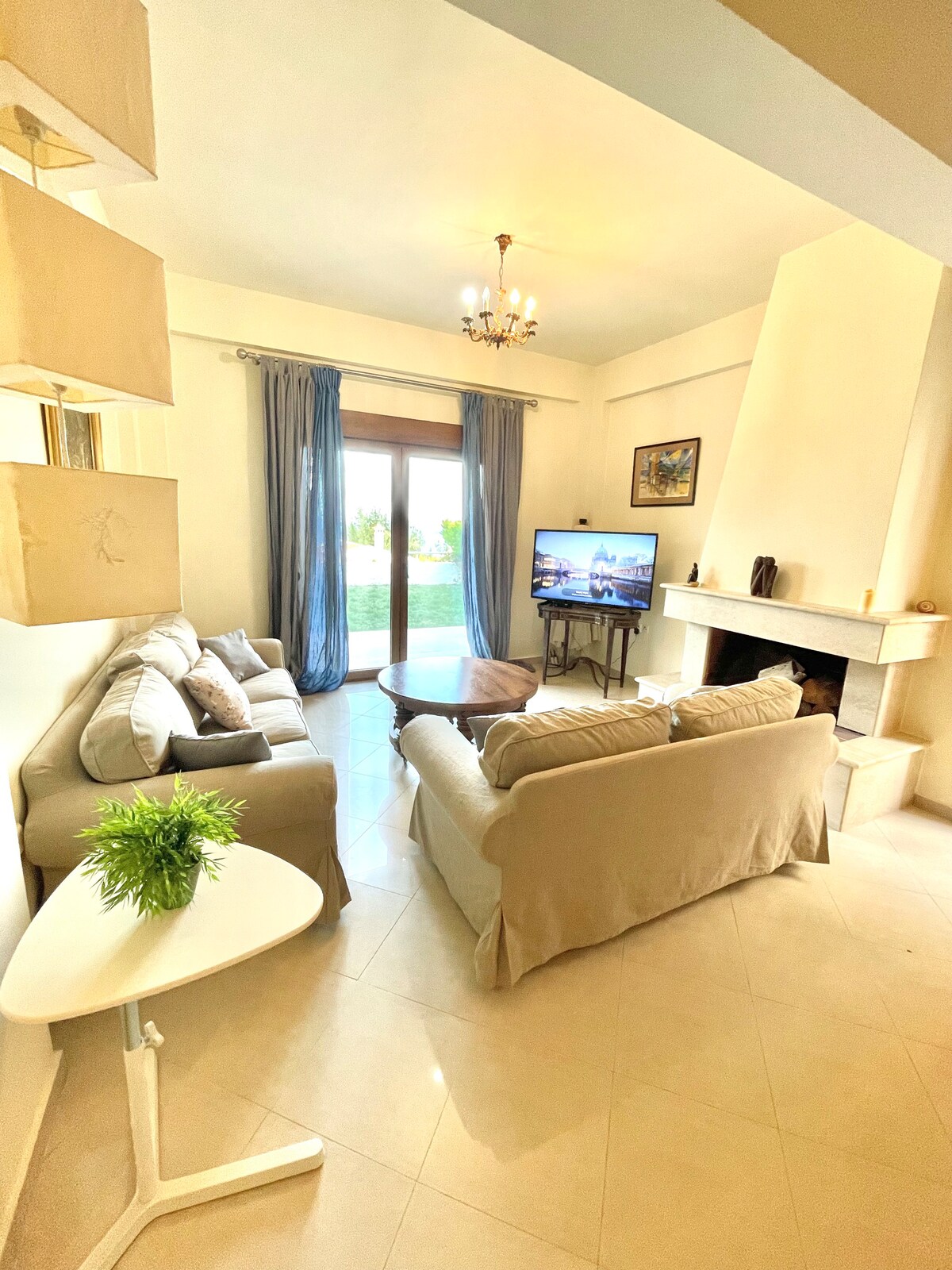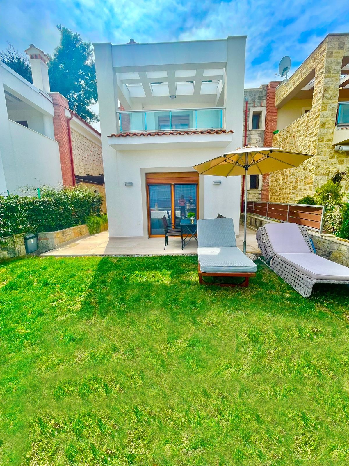Villa into Sani's pine woods forest. 20' on foot from Koutsoupia beach, Sani beach, Sani Resort and Marina. Garden and balcony in addition to the unique scenery to spend quality time with your loved ones. Private parking spots: 2 The unique position of our villa ensures that you get both the relaxation you seek but also you can have all the amenities that Sani Beach Provide.