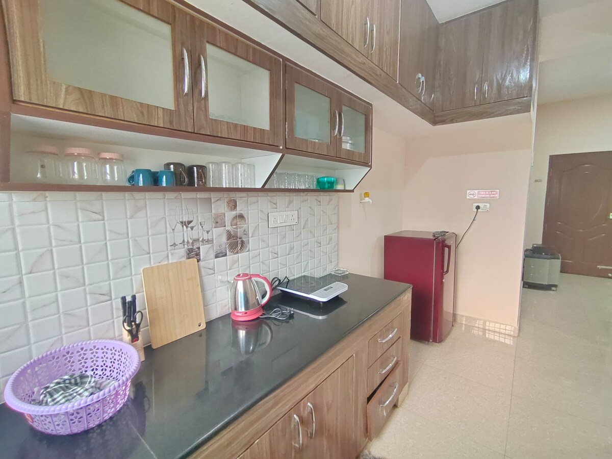Nestled in the heart of Whitefield, surrounded by lush greenery, our premium 1 BHK apartments are meticulously designed to offer high-quality stay experience and extreme comfort. We have used wakefit 10" memory foam mattresses in bed room and amoeba sofa cum bed in the hall, to offer ultimate sleep quality and back support. We designed our kitchen spaces with modern kitchen utensils - including mini bar set. Other amenities include 100 Mbps WIFI, proximity to the Metro station, and IT hubs.
