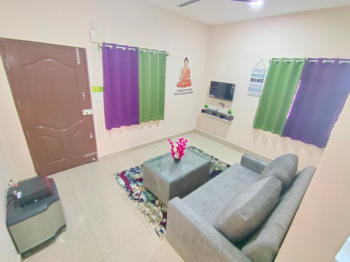 Enjoy a comfortable stay in this cute and stylish 1BHK featuring a fully equipped kitchen, decorative interiors, smart TV, and free Wi-Fi. Great for couples and families. Conveniently located near a mall, hospital, theatre, and shops, with excellent connectivity. All essentials and support available on call for a smooth, hassle-free stay.