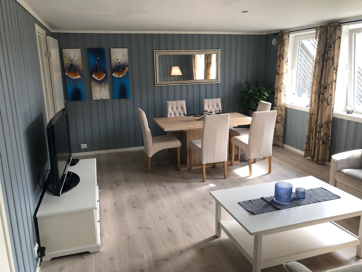 Apartment with 2 bedrooms and 7 beds, living room with dining room and kitchen. 1 bathroom + laundry room. Extra room with sofa, games and toys. Outdoor area with garden furniture, barbecue and lawn. Possibility for charging electric car (according to agreement) Andøya is a great place to be with proximity to e.g. lake, small beaches, hiking trails, football pitch and sand volleyball court, etc. Approx. 7.5 km from Kr.sand city center and approx. 20 km from the Zoo. Leos Lekeland and Skyland Trampoline Park are about 4 km away. Bed linen must be brought or agreed upon.