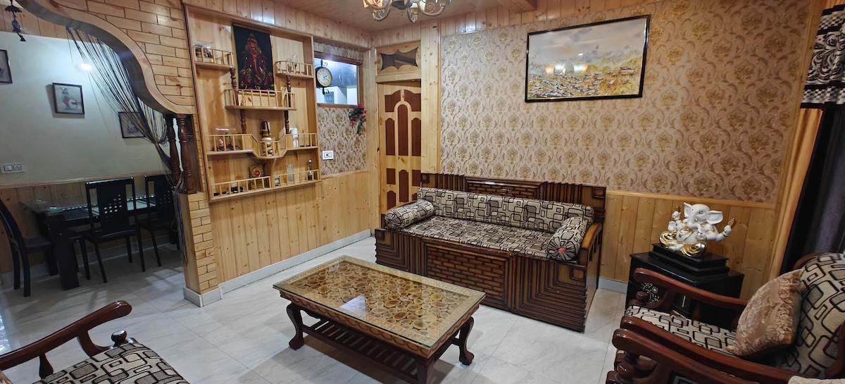 Its a 2 bedrooms with attached bathrooms and living room with all the basic necessities. It has a fully equipped kitchen. Also, it is located in Aleo near Atal Bihar Vajpayee Mountaneering School and 2.5 kms from mall road.