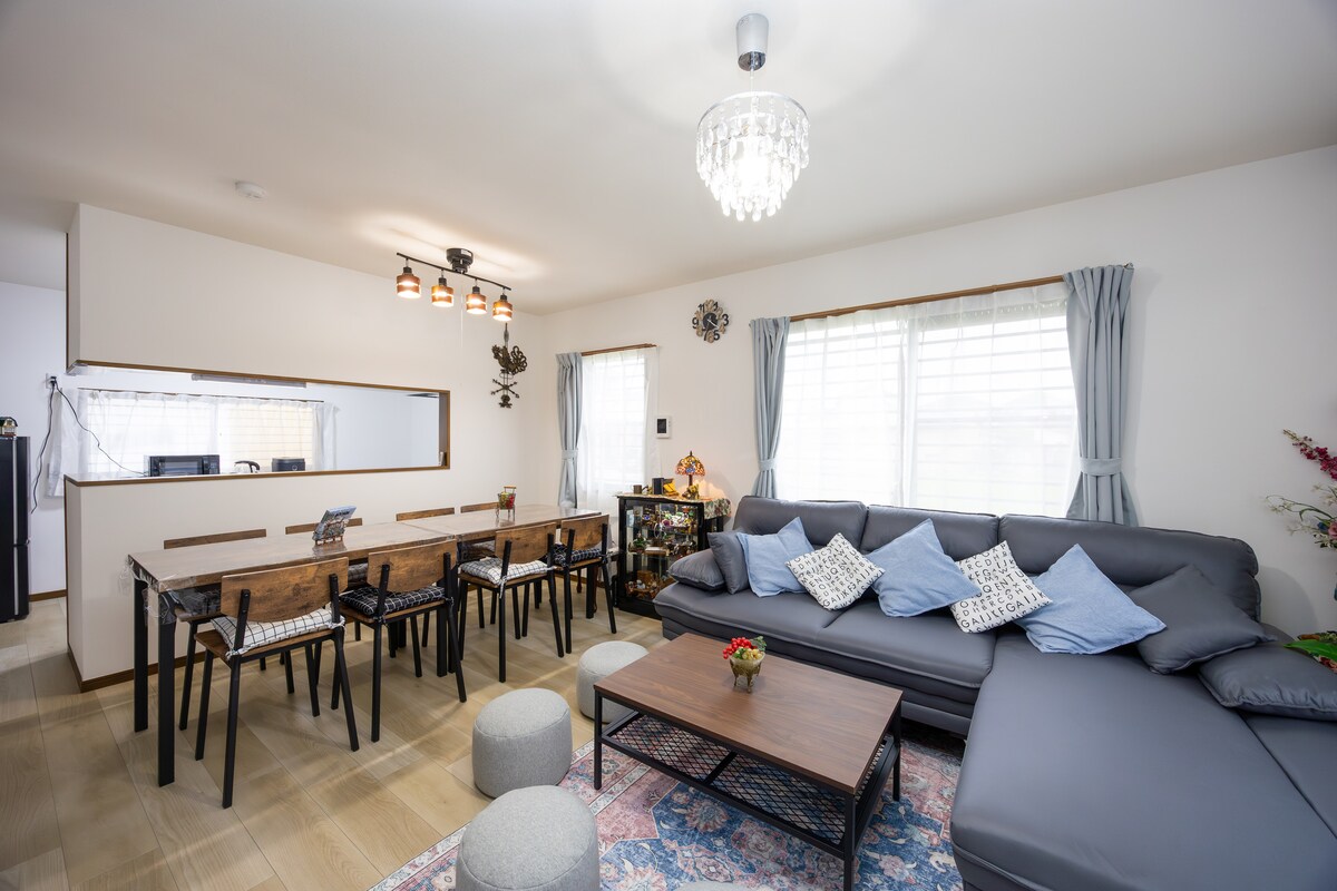 ✨October 18~ May 31: The grand illumination at Nabana no Sato begins! The vast grounds are transformed into a magical world of lights, offering a mesmerizing experience for both children and adults. ✨ NAGOYA KUWANA CHOCO HOUSE offers excellent access to Nagoya city and Nagashima Spa. Perfect for families and groups of friends, with space for up to 12 guests! Spacious two-story entire house 2 bathrooms and 2 toilets for large groups to stay comfortably Fully equipped kitchen for self-catering