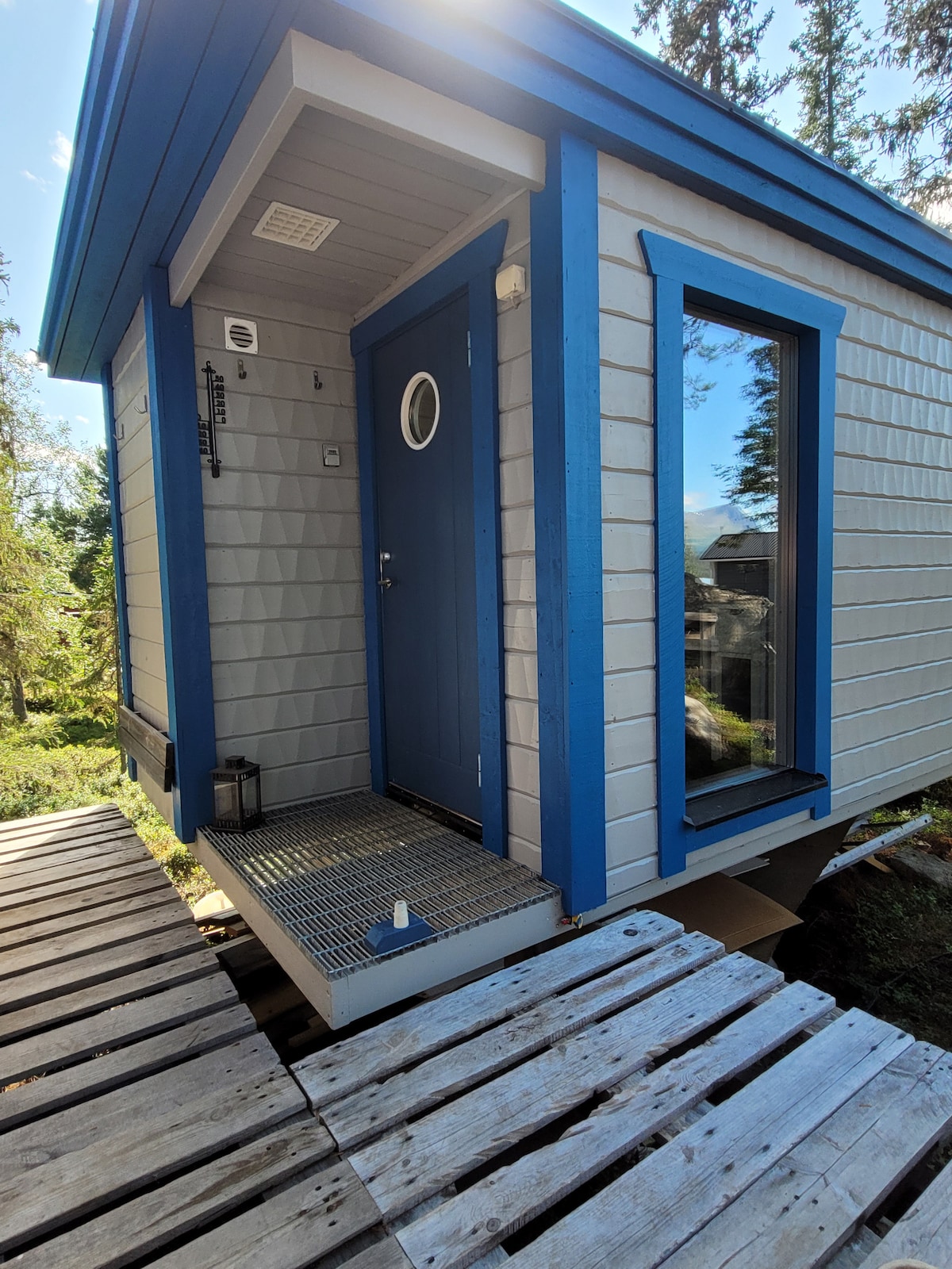 Lodge Nammatj, cottage with sleeping loft, sleeps 4. Living room with dining area and cast iron stove, small kitchen with kitchen equipment for 4 people. There is hot and cold water, toilet and shower in Nammatj. Balcony with seating. BBQ area. There is wood for a fire in the cottage, if you want to burn more, if you bring your own wood. Note: Bedding and towels are not included!