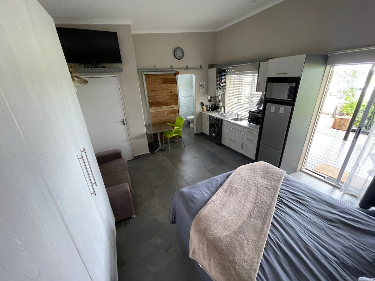 Our secure garden cottage has it's own entrance, with use of swimming pool and braai facilities. The space is newly renovated, with Egyptian cotton bedding, a kitchenette with refrigerator, microwave and kettle. Tea, coffee, milk and bottled water are provided. Spacious shower in the bathroom. Uncapped wifi, a desk for work, and Netflix and Showmax available. Enjoy sundowners on our deck overlooking the pool. You also have your own private outdoor seating area perfect for alfresco meals.
