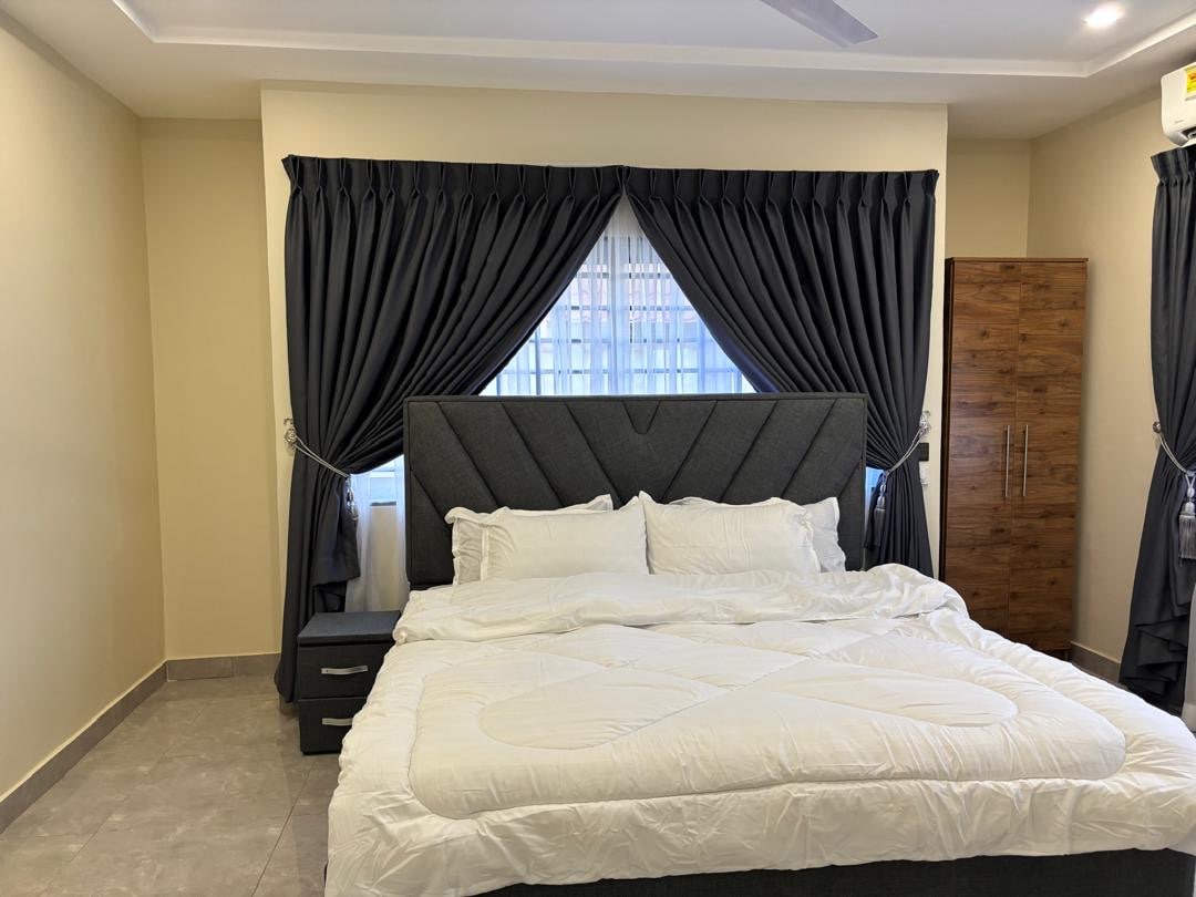 Discover modern elegance and comfort at DAV Hills, your serene urban retreat, is 5 minutes from Pokuase Interchange, 10 minutes from Achimota Mall, and 40 minutes from Kotoka International Airport. The apartment is designed to blend contemporary style with ultimate convenience. Enjoy uninterrupted comfort with solar backup power, constant water and premium entertainment. Relax knowing you’re covered with 24/7 security, secure on-site parking, and ample space for private events or gatherings.