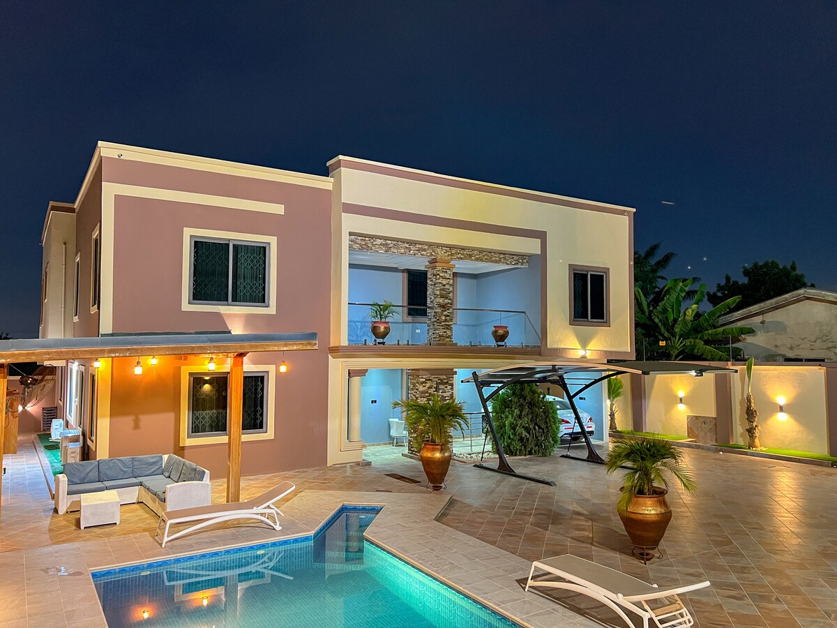 *No parties allowed* Just minutes from Achimota Mall, this stunning 5-BDR villa offers the perfect blend of comfort and space. Ideal for families, groups, or business travellers who want more than just a place to sleep, there is a pool with plenty outdoor space. - ultra-fast WiFi not unlimited - 30 mins from Airport - 5 mins AchimotaMall - 2 mins from St John's Hospital - close to local shops/market with ATM&Forex - 5 double sized BDR/en-suite - Netflix - Parking - pool - modern kitchen