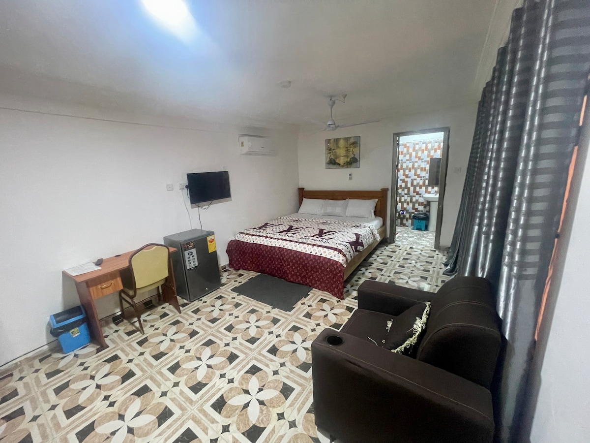 Quiet Place. Serene Atmosphere. Neighbors provide Security. Easily accessible by Vehicle and by Foot. Close to Obomeng Township Center and the Main Road. Electric Hanging Fans available for Cooling if needed.