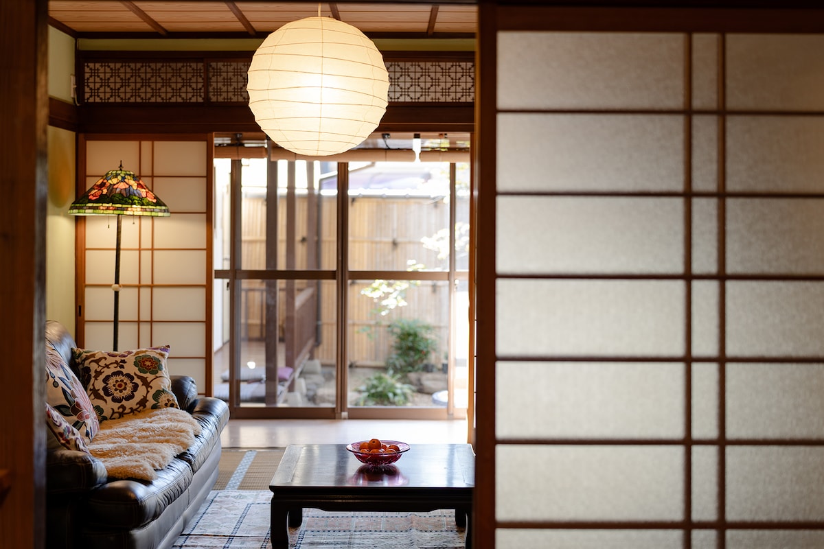 The soft light that enters the courtyard illuminates the century-old Kyoto townhouse. Recommended for those who want to stay in Kyoto like a local, away from the hustle and bustle of tourist destinations. This townhouse is rented out as a whole, so you can spend a relaxing time with your family and friends without worrying about other guests. Some of the walls of the inn were DIY, and we carefully selected the interior ourselves.Antique stained glass, Isamu Noguchi's Japanese paper lighting, Simmons beds, Muji bed linens, and more are designed to make guests feel at home.You can feel the old Kyoto scenery as it is. The soft light and shadow from the courtyard quietly tells the story of the life of the Kyoto townhouse for more than a hundred years. Stay away from the hustle and bustle of the city, live like a local, and slowly experience Kyoto. This townhouse is rented as a whole, no need to share space with other guests, You can enjoy a private and quiet time with your family or friends. We will do the DIY renovation of the interior walls of the house. We carefully select and arrange all the furnishings and decorations in the room. Antique stained glass, Yusuke Noguchi designed Japanese paper lamps, Simmons mattress and Muji bedding, Every detail is intended to make guests feel as warm and secure as if they were at home, quietly experiencing the unique atmosphere of Kyoto.
