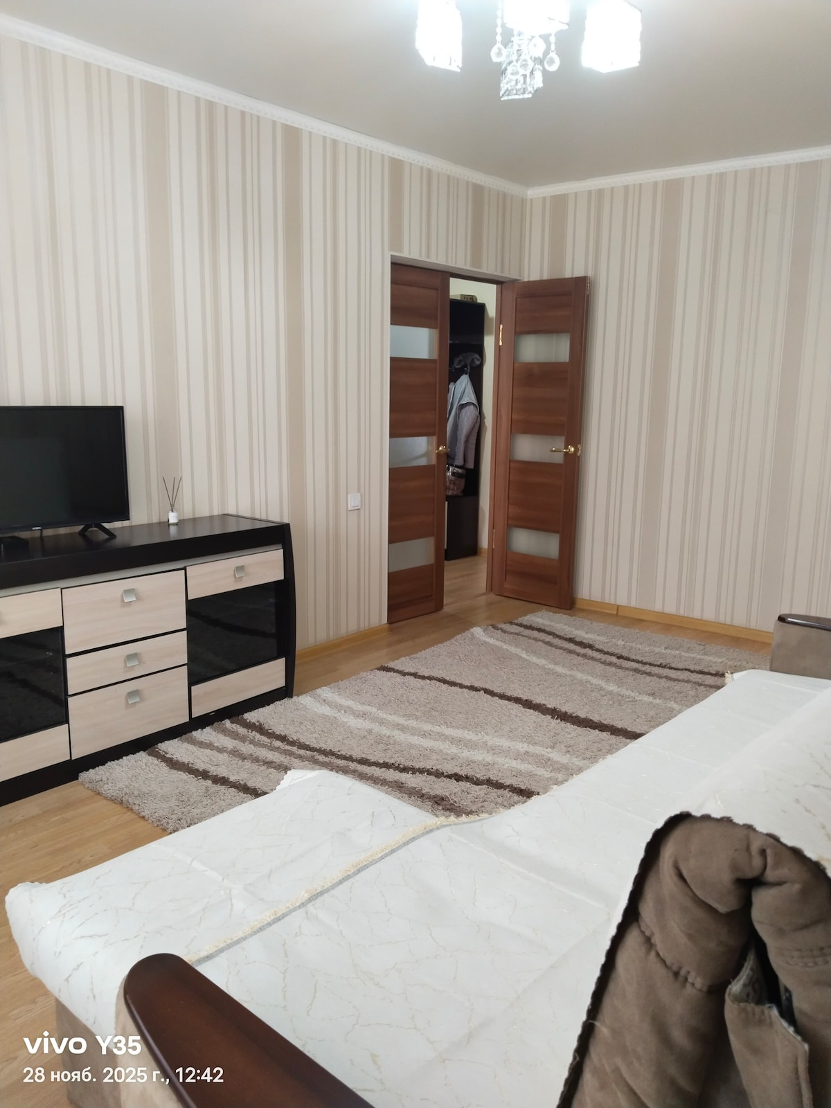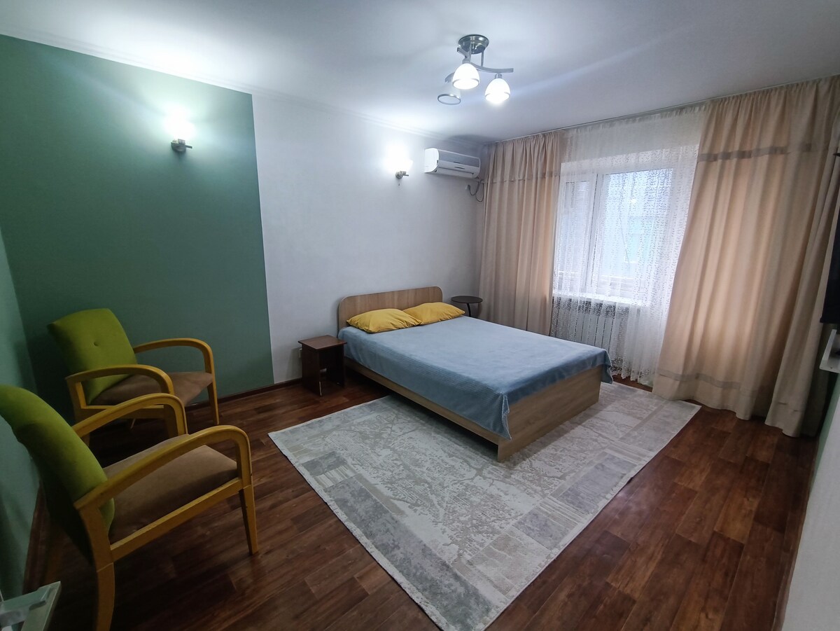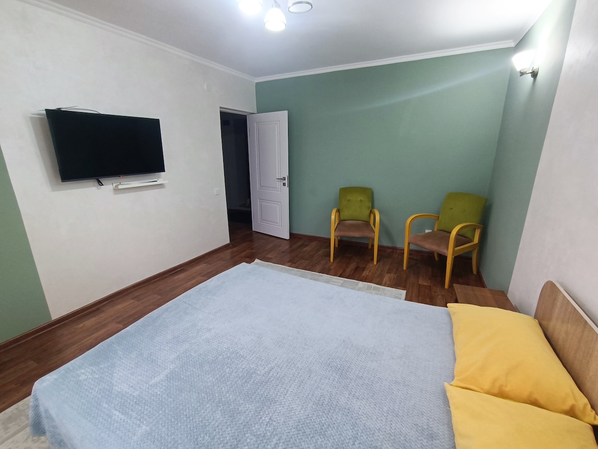 Comfort and space! There's plenty of room for everyone in this place. The apartment is located in the city center; near Oblzdrav, Rice Institute, two blocks from the Eurasia Sports Complex, Stadium, Boxing Federation. Nearby shops, pharmacies, beauty salons, Kaspi Bank, etc. The apartment is always clean and fresh. We provide bed linen, towels only made of cotton. Hosts are available 24/7. Housing experience - 1.5 years.