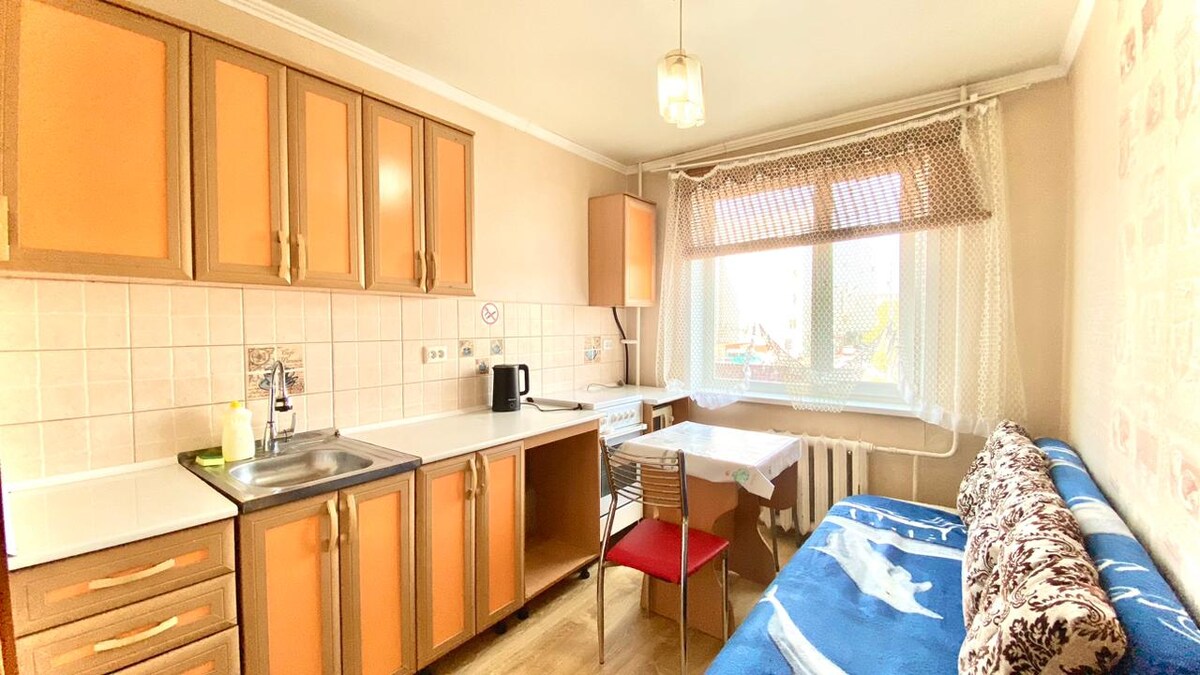 A stylish one-room apartment with a new renovation in the Uyut district is for rent — a great place for a comfortable stay! A fresh interior awaits you here. A spacious room with a comfortable bed and TV. The kitchen is equipped with everything you need: a stove, fridge, microwave and utensils for cooking simple and delicious meals. The bathroom has new plumbing. Free WiFi is available in the apartment. Surrounded by shops, cafes and convenient transport hubs. Contactless check-in and payment are available.