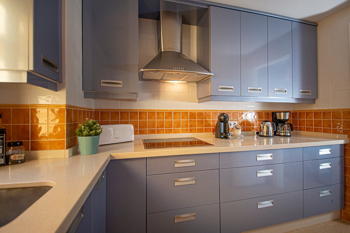 Stylish apartment with a nice terrace and ocean views. In a residential complex with a pool and very nice and well-kept common areas, and above all quiet. Very bright, spectacular terrace, spacious bedroom with 1.5x2m bed (new mattresses), kitchen with a pass-through, AA, fast Internet, 50" TV (YouTube, Prime, etc.). Close to all kinds of services: Beach 500m, supermarkets, pharmacy and restaurants less than 5min walk. Marina 10 minutes away, by promenade. Palacio de Congresos is a 15-minute walk away.