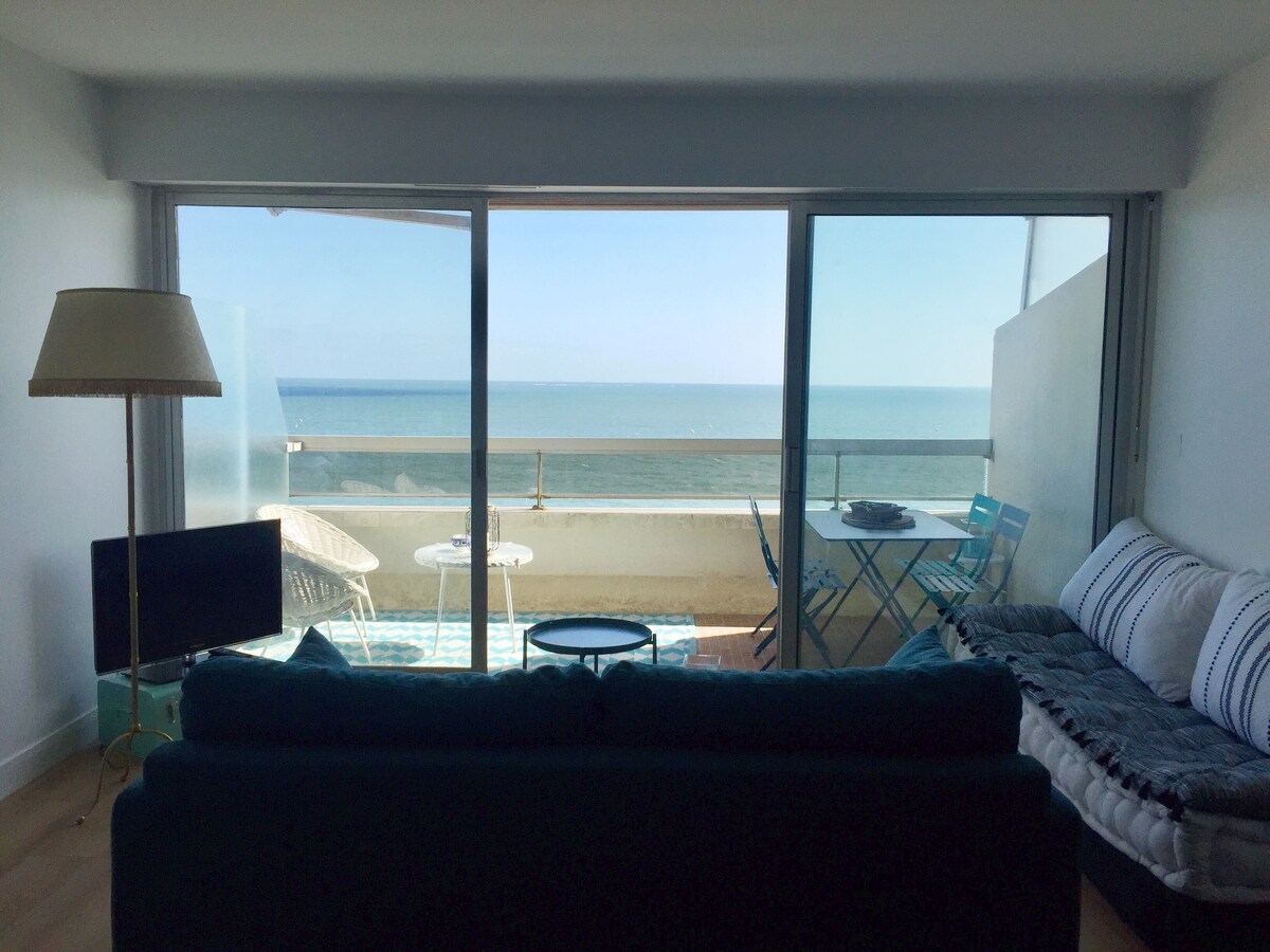 oceanfront studio with stunning views, 2nd floor. 2mn AQUABAULE (ocean water pool, Hammam,sauna, marine course) comfortable, bright renovated by interior designer. folding 160 bed, microwave oven, freezer, fridge, coffee maker, kettle, nespresso, hair dryer, iron, dishwasher, induction cooktop, hood, smart TV, WIFI free parking in the neighborhood terrace chairs table 2 deckchairs Towels and bed linen is provided