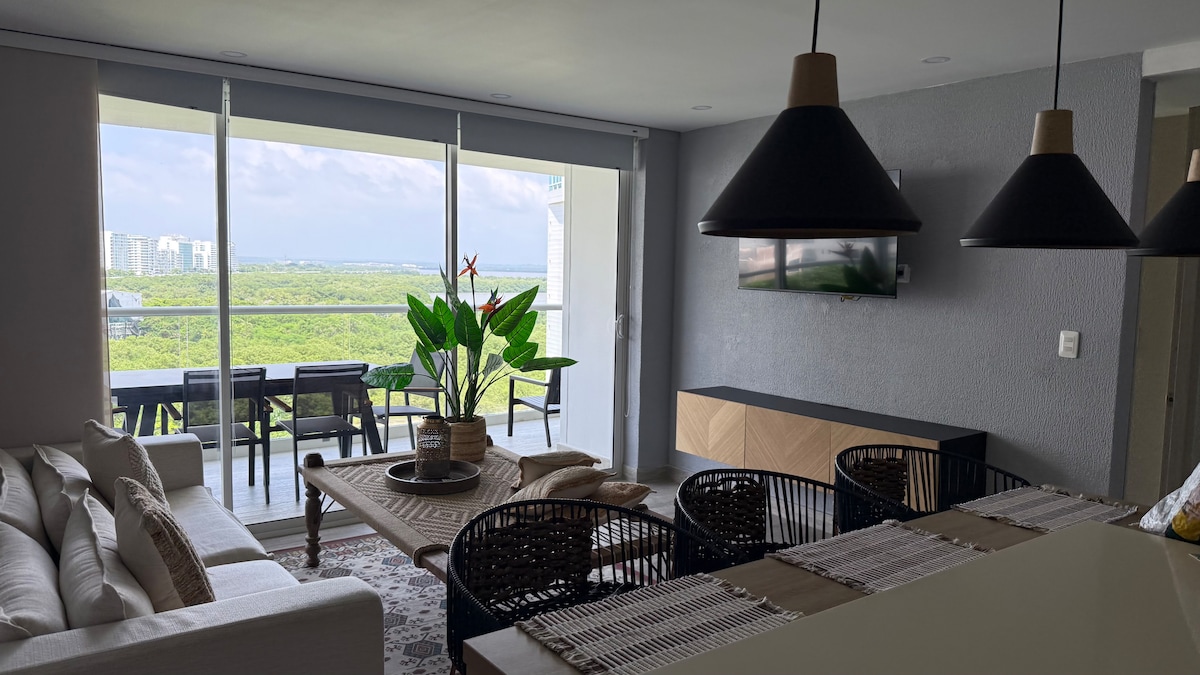 Spacious and stylish apartment with a scenic view of Ciénaga de la Virgen and direct beach access. Enjoy a large balcony, fast Wi-Fi, TV, and a premium Bose sound system. Perfect for relaxing or working remotely. The complex features 3 pools (including one for kids), a jacuzzi, and a fully equipped gym. Ideal for couples, families, or solo travelers seeking comfort, nature, and convenience. We promote a safe and respectful space for all guests.