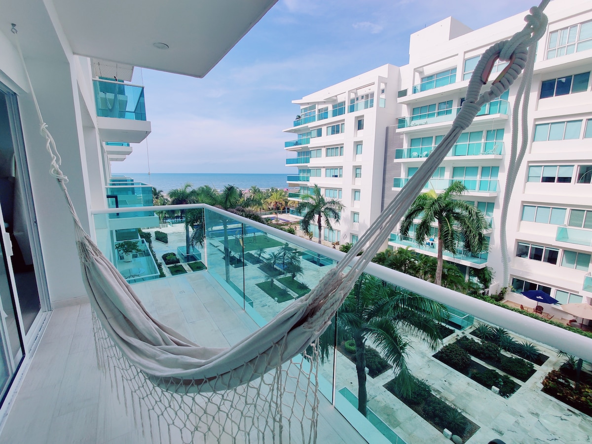 At our apartment, located on the beachfront 6th floor of Spiaggia, one of the most sophisticated buildings in town, you can enjoy breathtaking views from the balcony while sitting in or just chilling in the hammock. Location is perfect, just 15 minutes from Cartagena City Walled. Taxis available all day. We can provide 1 parking lot if needed. Spiaggia amenities include Infinity Pool and 2 Jacuzzis , Steam Room and Sauna, Kid’s pool, Water playground. Views from the rooftop are just amazing!